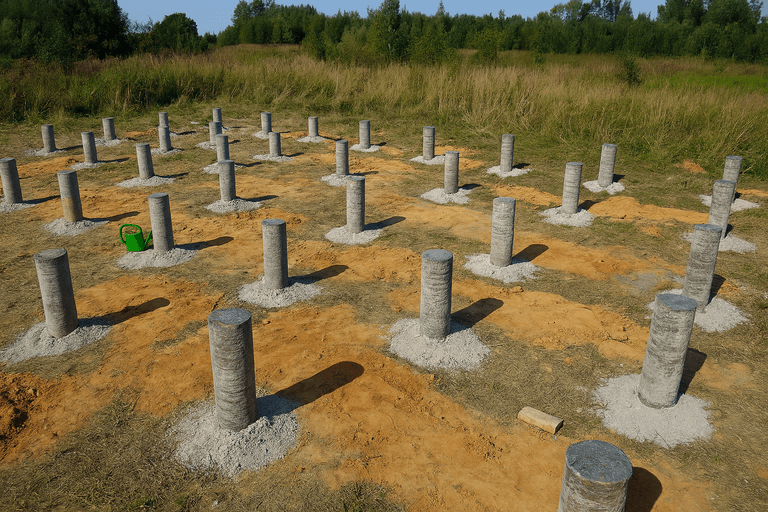 Технология фундамента ТИСЭ основана на бурении скважин с уширением основания и армировании с последующей заливкой бетоном. Такой фундамент считается оптимальным решением для строительства домов различного масштаба, особенно в условиях слабонесущих или пучинистых грунтов. Мы предлагаем реализацию фундамента ТИСЭ под ключ с соблюдением всех норм СНиП и точной проработкой каждого этапа.